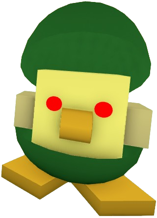 Commando Chick has a similar appearance to other Chicks but is twice as large as a normal one. It also has a green shell and red eyes.