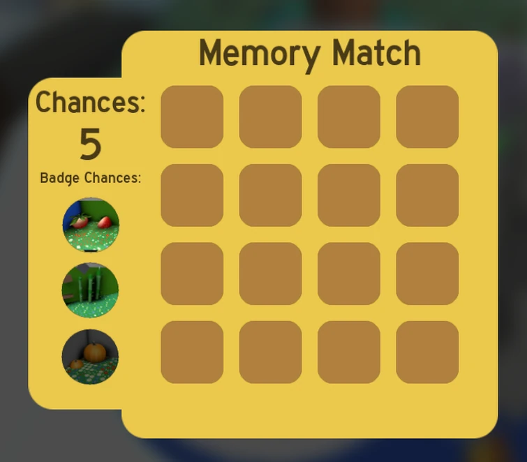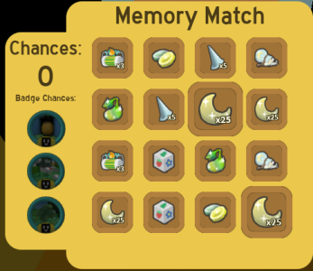 When activated, a screen will pop up with a board of size 4x4 or 4x5 cards. A player has a limited number of chances to match cards together. Matching a pair also costs a chance. They can gain more chances if they have the required badge and its rank to get it.