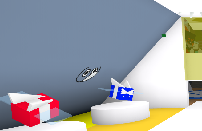 - Some stickers are references to famous ROBLOX games, those being: Waving Townsperson - Welcome To Bloxburg!, Interrobang Block - Lucky Blocks, Cop And Robber - Jailbreak, Grey shape companion - the Pet Simulator series, Orphan Dog - Adopt Me!, Evil Pig - Piggy, Theatrical Intruder - Break In (Story), Desperate Booth - Pls Donate, Pizza Delivery Man - Work at a Pizza Place, and lastly: Built Ship - Build a Boat For Treasure.