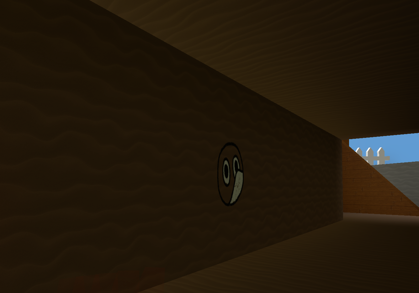 Left wall at the start of stairs to Dapper Bear's Shop. |