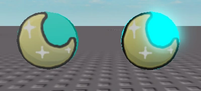 兩種類型的月亮符代幣:左邊是由怪物或隕石掉落的不會發光的代幣;右邊則是在晚上藉由螢火蟲、火花或月亮嫩芽掉落的會發光的代幣。